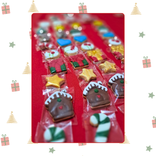24 galletas de Navidad decoradas con glasé, una para cada día del Adviento. Cada día tendrán una deliciosa galleta con una temática navideña y una actividad sencilla para realizar con un adulto.
