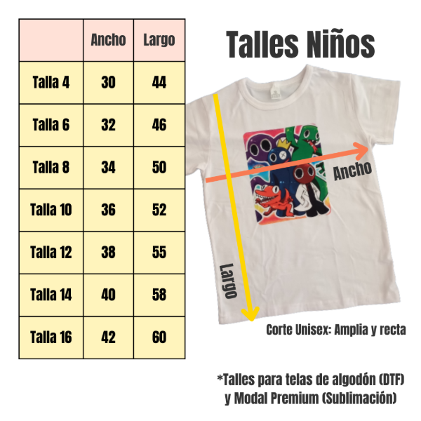 • Tela de la remera sólo en color blanco o gris.